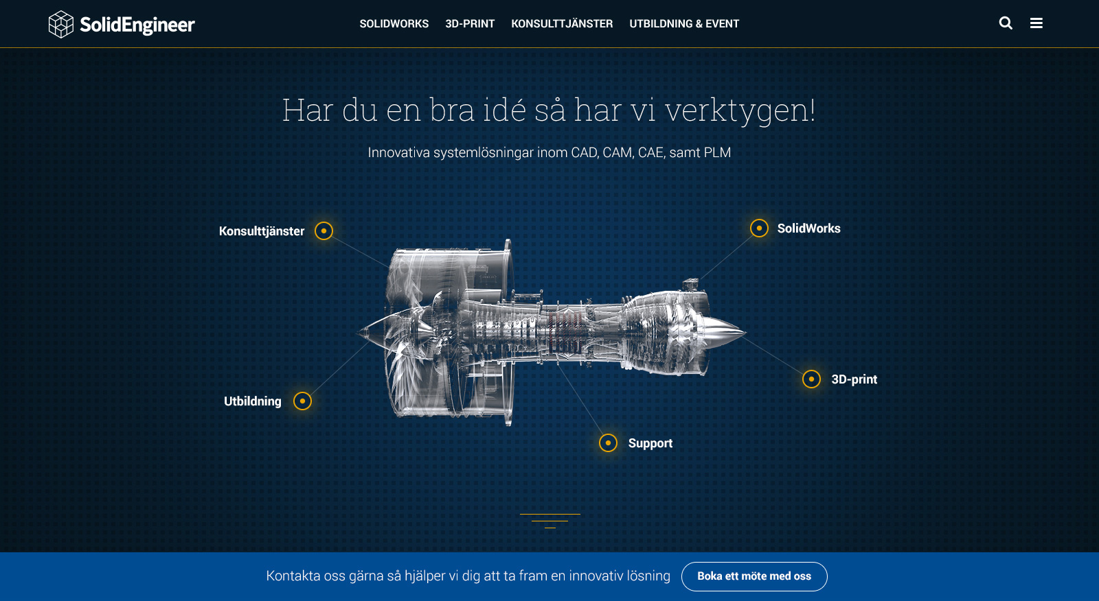 SolideEngineer säljer produkter och tjänster kring CAD och 3D-print. De ville uppdatera hela sin grafiska profil samt bygga en ny webb (solide.se) med bättre struktur och UX. Varumärket skulle ha en tuffare framtoning för att tilltala rätt målgrupp med en ton åt det nyskapande hållet.