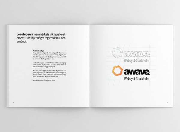 Awaves grafiska manual nedan baserades på deras befintliga logotyp. Den blev också grunden för utformingen av den nya responsiva sajten awave.se. Till filmen på startsidan har jag bidragit med koncept och copy samt gjort slutredigeringen. Till Portfolio