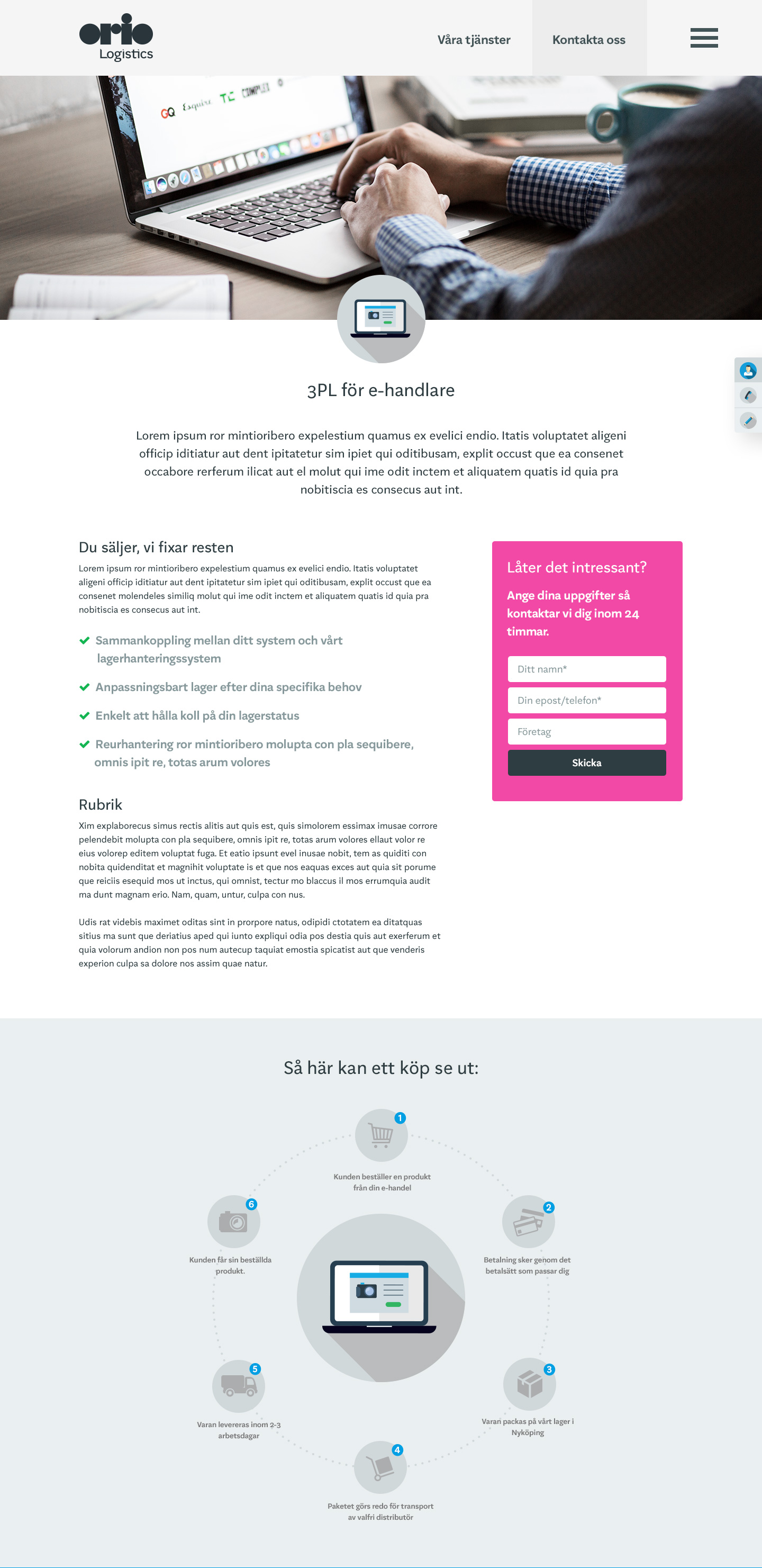 Uppdraget för oriologistics.com var främst att stärka deras position som ett flexibelt och innovativt företag inom tredjepartslogistik. Designen följer oriokoncernens redan inarbetade profil men med tydligare fokus på tjänster och kontaktytor. Till Portfolio