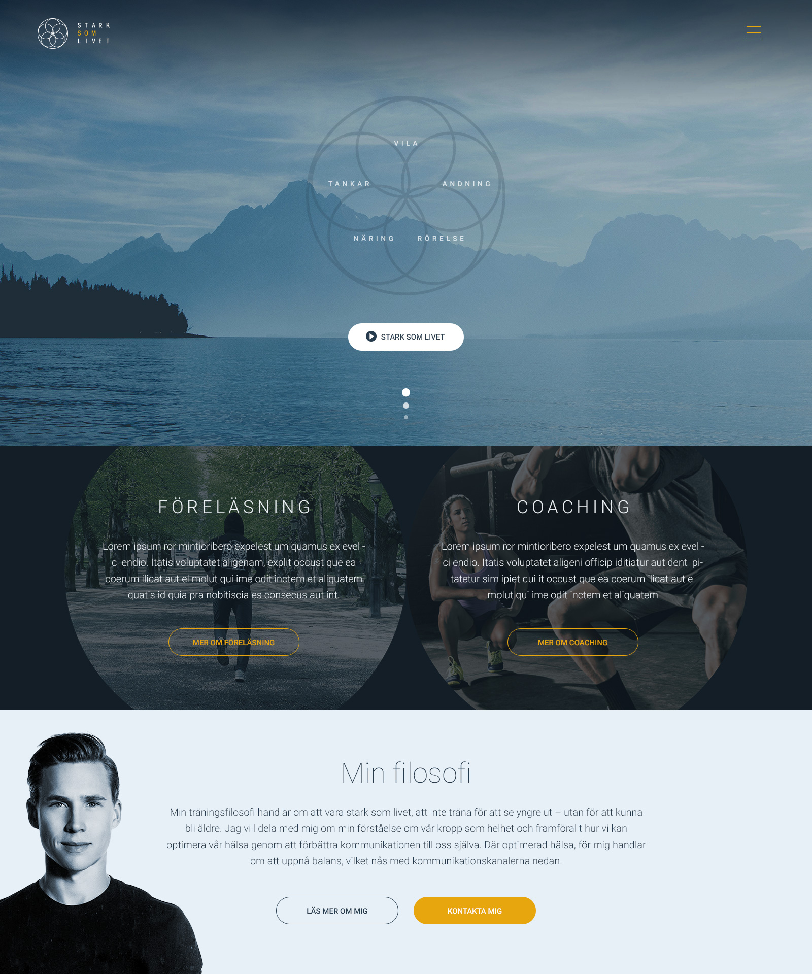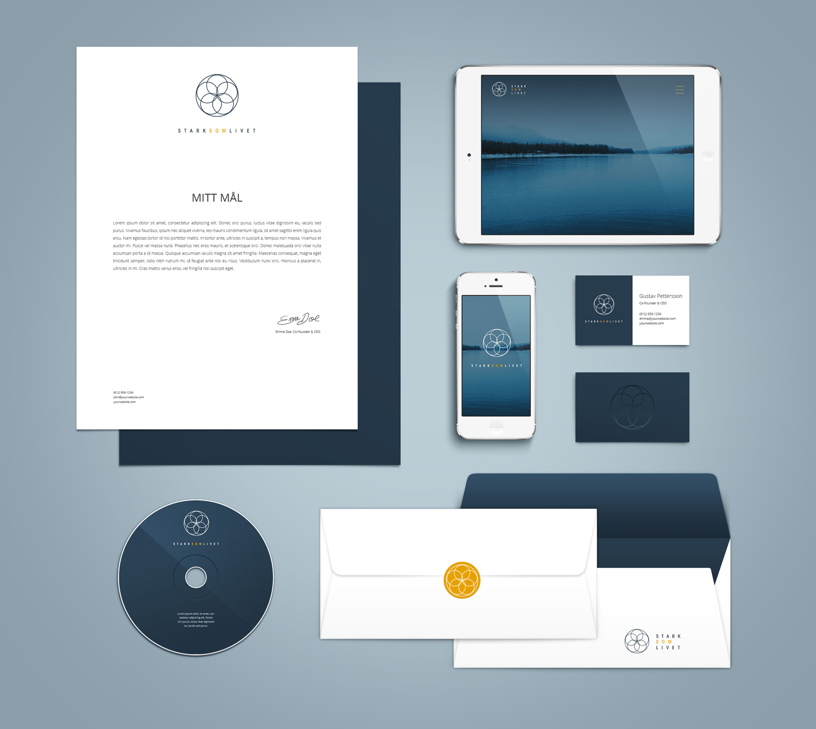 Här har jag med kundens hjälp (min personliga tränare) tagit fram en helt ny visuell identitét med logotyp, presentationsmaterial och webbdesign. De fem hörnstenarna representeras i logotypens cirklar och återspeglas i all kommunikation. Till Portfolio